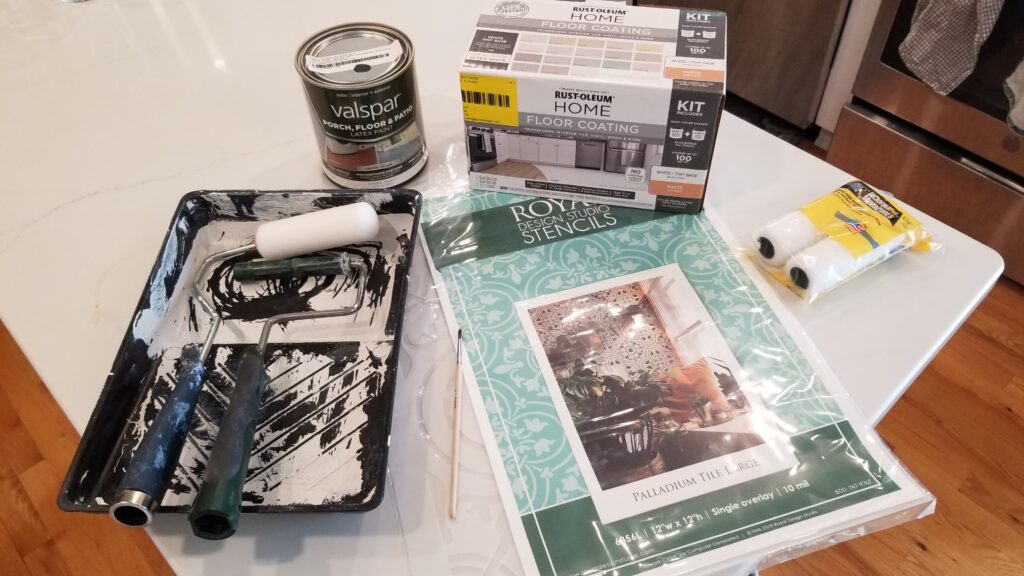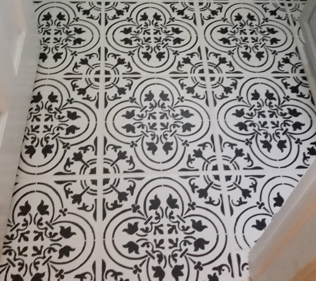 Time line – Give yourself 5 days realistically to get this done. Especially with the stenciling it’s best to really let it dry in between tiles, and the final top coats need more time to dry and Cure before you can walk on them.
