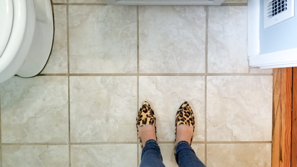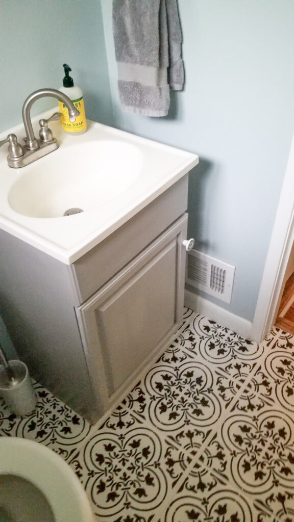 When we moved into our first house we were so excited, we had done it, home ownership adulting level unlocked! As with most peoples’ first home ours wasn’t exactly the Taj Mahal, but it was perfect for us. That being said there were quite a few projects that we had on our list of things to spruce it up. One that I am particularly proud of is having the gumption to hand paint the tile floor in our downstairs guest bathroom!