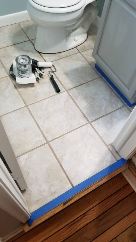 Step 1: Start by cleaning your floor and grout really well! Use your usual home cleaning products first, make sure all the dirt and dust is gone, and then use the cleaning product that comes with the kit. Also Tape off any vents to the room so dust isn’t blown in.