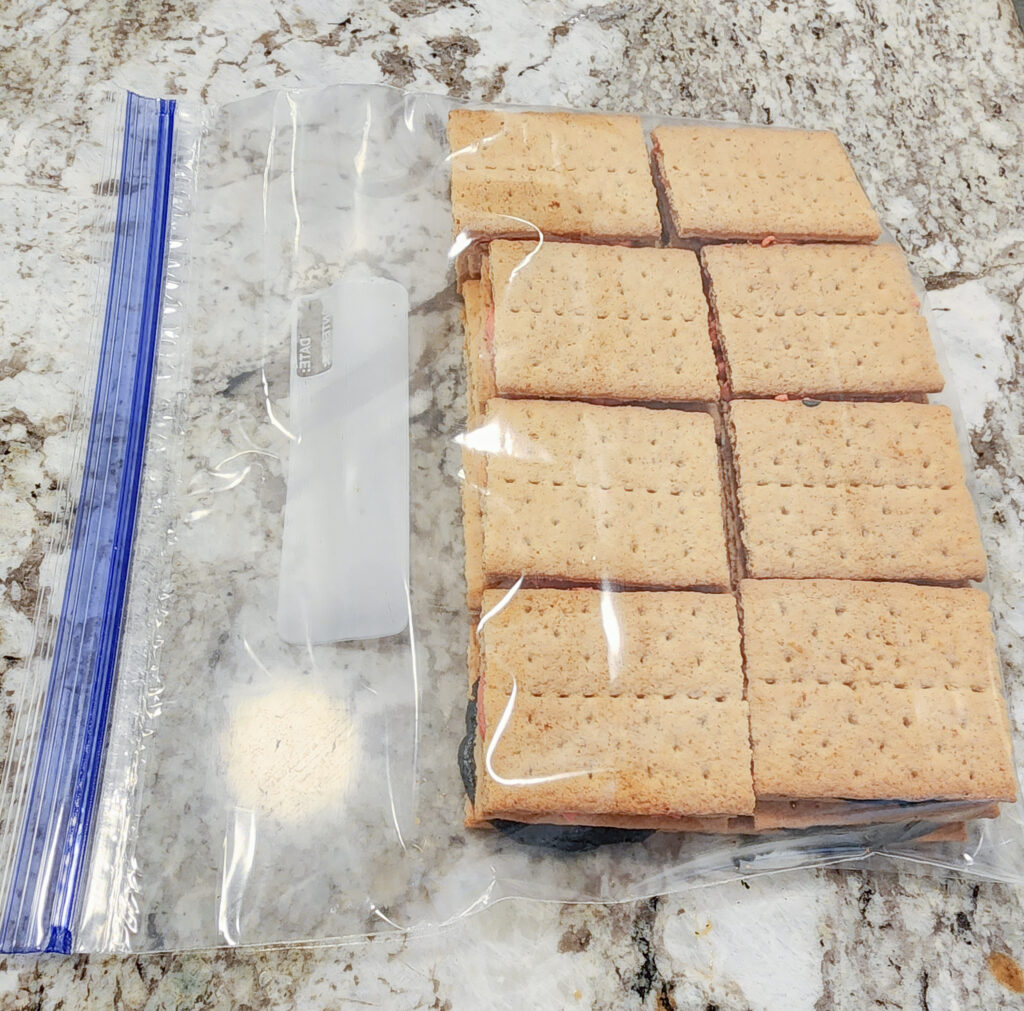 So what is it we do exactly? Well its pretty simple. We spread/squeeze it in between two graham crackers and let it sit for a few hours so the crackers get a little soft and chewy!